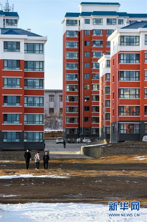 居平易近在內蒙古烏蘭察布市卓資縣易地搬遷房福安小區內漫步(2020年3月26日攝)。新華社記者 連振 攝