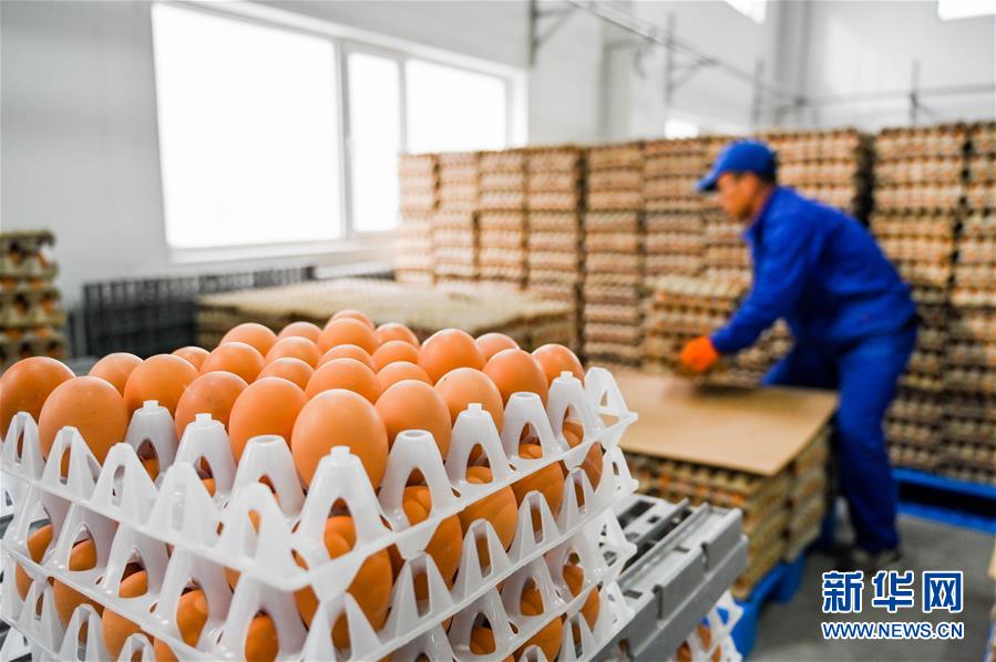 內蒙古烏蘭察布市卓資縣十八臺鎮村平易近在當地奧迪零件金雞產業園區廠房內分揀德系車材料雞蛋(2020年3月26日攝)。新華社記者 連振 攝